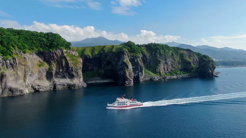 陸路からでは辿り着けない知床半島の突端・知床岬で折り返す約4時間のコースです。 距離が長い分、船でしか見られない景色を見ることができます。